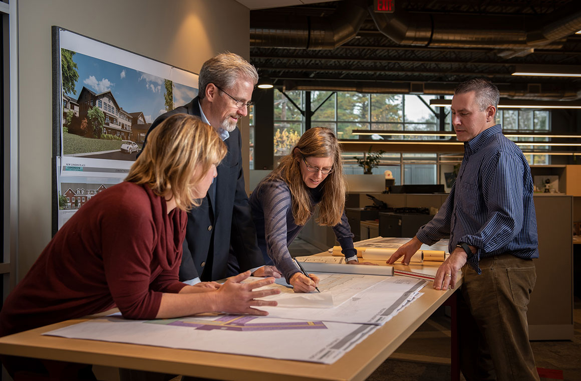 comprised of architects, engineers, designers, estimators, and construction personnel, all working together to achieve a successful project.