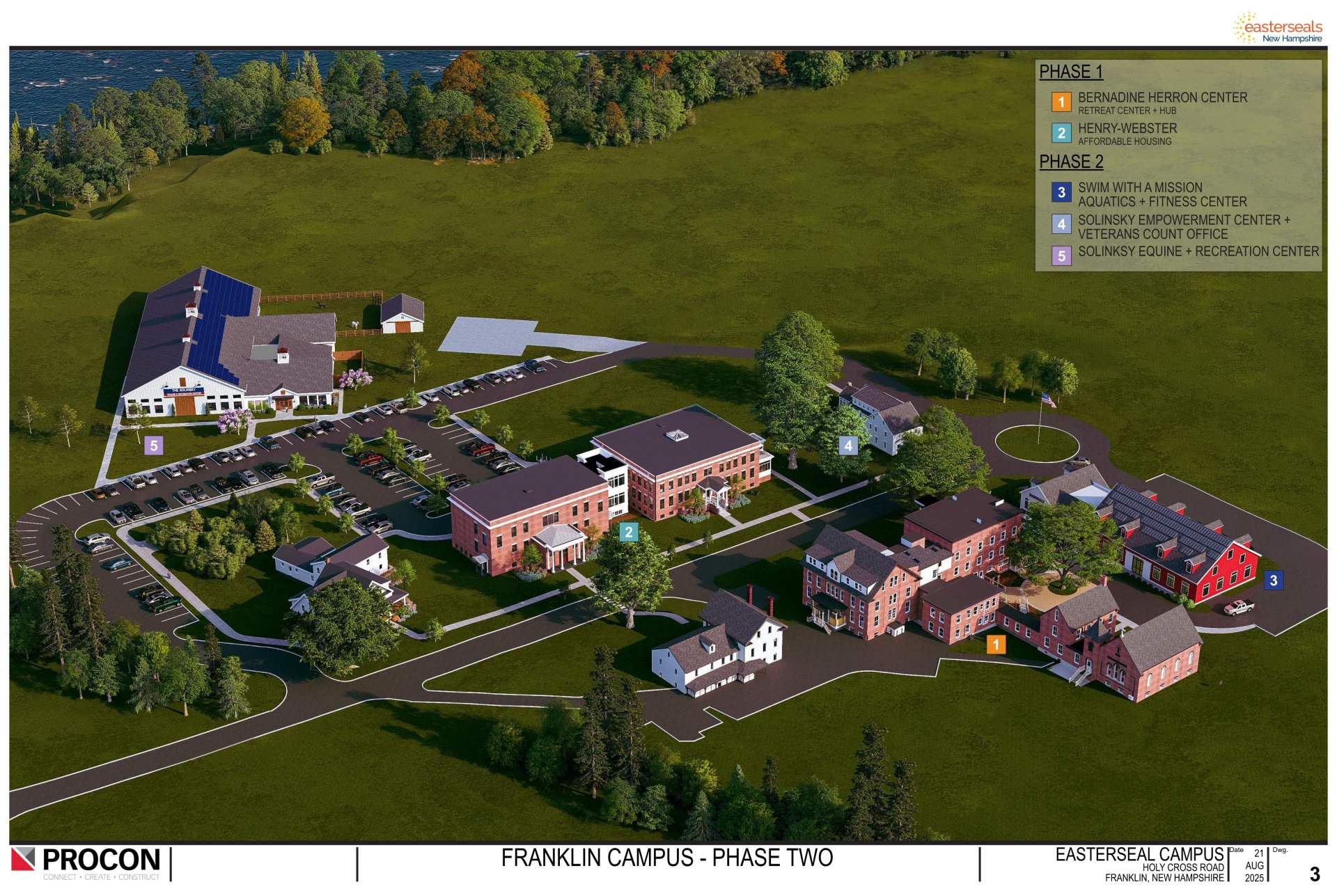 FRANKLIN, NH – On Thursday, September 18, Easterseals NH officially opened the state’s first Military & Veterans Campus with a ribbon-cutting ceremony that brought together over 1,000 Veterans, service members, dignitaries, community leaders, and families from across New Hampshire. The event marked the completion of Phase I of the Easterseals NH Military & Veterans Campus that was designed and built by PROCON, which is set on 15-acres located at 27 Holy Cross Road in Franklin, NH, a transformative space designed to support service members, Veterans, first responders, and their families through housing, services, and community.