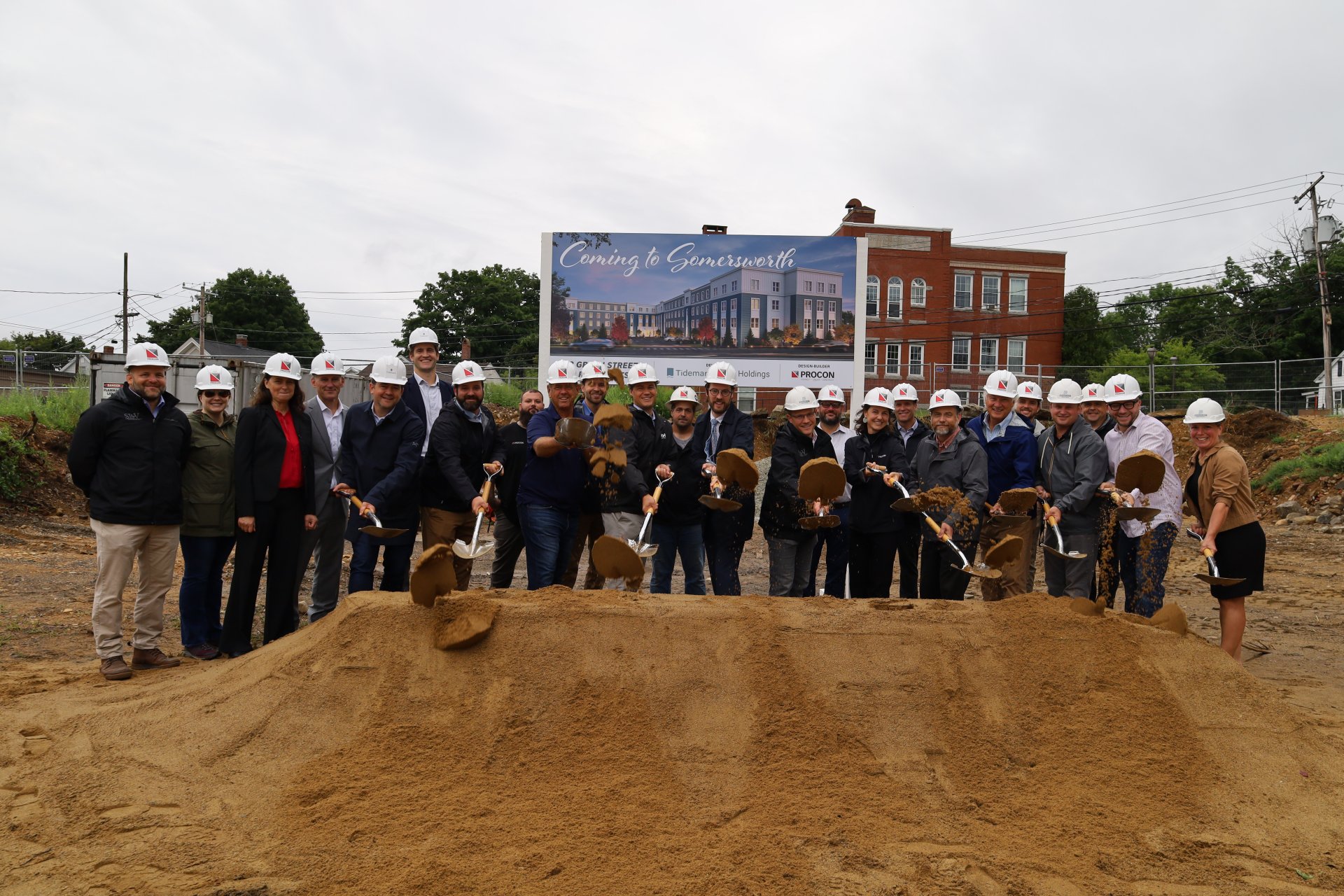 SOMERSWORTH, NH – Addressing the critical housing shortage in New Hampshire, Tidemark and BOD Holdings LLC have broken ground on a new 135-unit apartment project in downtown Somersworth. This modern residential project will offer surface parking and state-of-the-art amenities. State and local officials, along with members of the community, joined BOD Holdings LLC, Tidemark, and PROCON’s design-build team for a groundbreaking ceremony to celebrate the beginning of this significant project, which will help revitalize downtown Somersworth and provide much-needed housing options for Seacoast, NH residents.