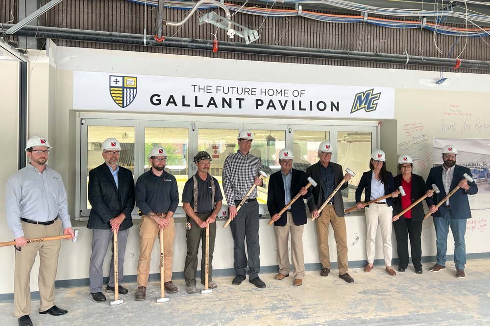 In recognition of the Gallant’s generosity, the project also includes the naming of the new Gallant Pavilion, which will feature premium club seating and viewing areas to provide an elevated fan experience. The College held a celebration event on Friday, June 9, in the DiCroce Family Lobby of the Merrimack Athletics Complex. More than 100 people were in attendance to recognize the Gallant’s gift.