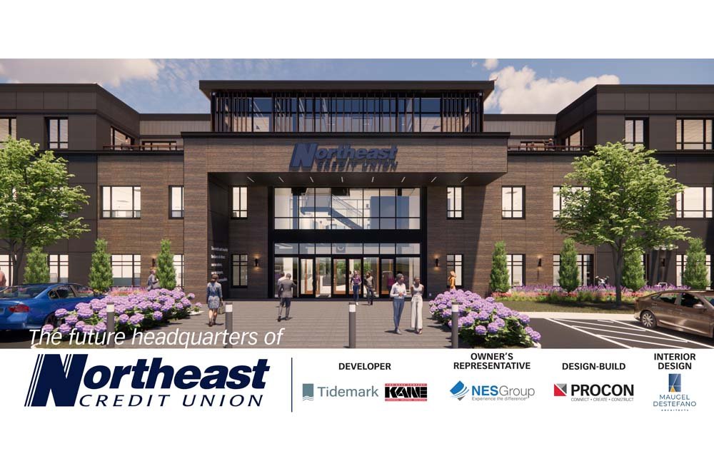 “Tidemark is thrilled to welcome Northeast Credit Union to our Education Way Campus in Dover,” said Eben Tormey Partner of Tidemark. “Tidemark’s Community Minded Purposed Built mission aligns with Northeast Credit Union’s commitment to help communities thrive through the elimination of food insecurity, access to affordable housing, and support of education. We look forward to working with Northeast Credit Union and our long-standing partners, the Kane Company and PROCON to deliver a first-class headquarters for Northeast Credit Union in this idyllic setting along the Cocheco River.”