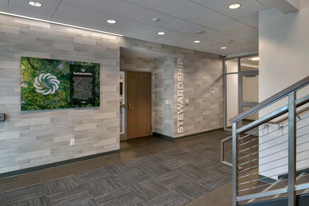 Unitil also partnered with Resilient Buildings Group to support its WELL and LEED certification efforts, as well as Stibler Associates, LLC, for space planning and interior design services, which included assistance with materials selections, furniture specifications, artwork and interior graphics.