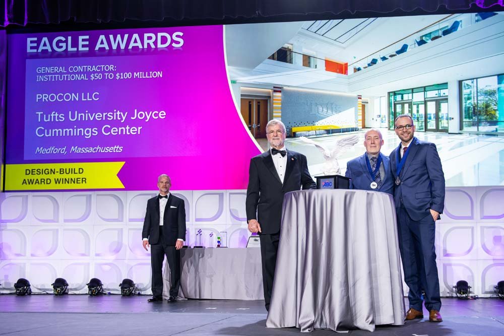 HOOKSETT, NH - PROCON announced their design-build project, the Tufts University Joyce Cummings Center in Medford, MA, has earned the company a national Excellence in Construction® Eagle Award and National Design-Build Award, presented during ABC Convention 2023 in Orlando, Florida, on March 16. The EIC awards, presented to 82 of the nation’s top construction projects in 2022, are the construction industry’s leading national competition that honors general and specialty contractors for world-class, safe, and innovative construction projects from across the country. Through an ABC partnership with Design-Build Institute of America (DBIA), special recognition is given to select Eagle Award winners to recognize efficiency in design build.