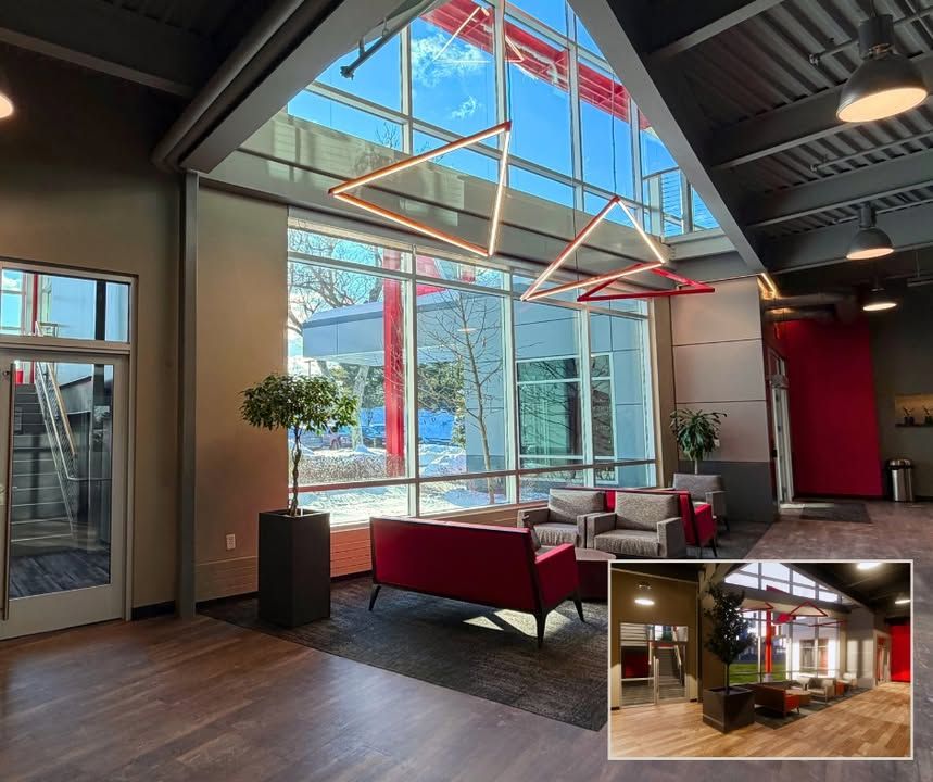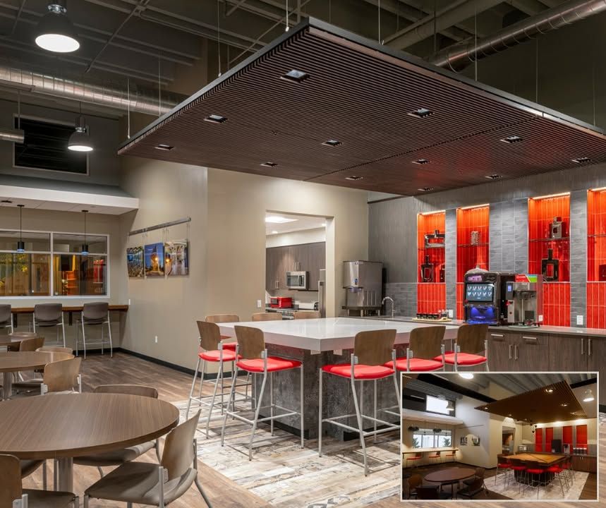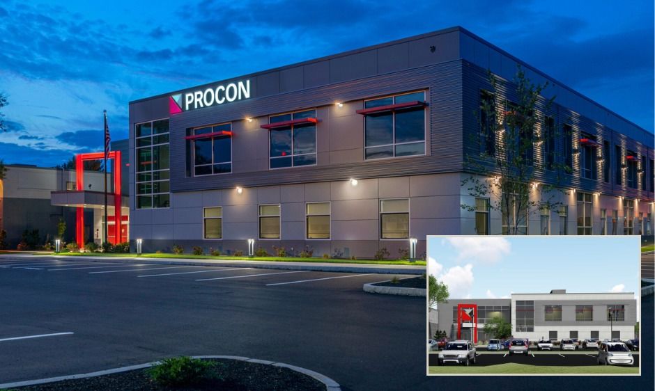 The 26,000 SF expansion included the development of a new lobby, cafeteria, training room, and additional offices to house PROCON's construction operations team. Conceptualized by PROCON's in-house design and engineering team, the renovated building features a modern-industrial aesthetic that highlights PROCON's brand colors of red and grey throughout the exterior and interior.
