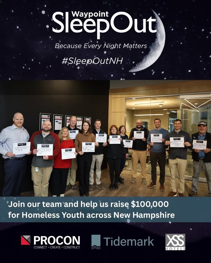 We are proud to support Waypoint again this year for their SleepOut Fundraiser. Our Team is participating in SleepOut because every young person deserves a safe home. SleepOut raises community awareness and funds to support essential services for young people who are experiencing or at risk of homelessness in New Hampshire.