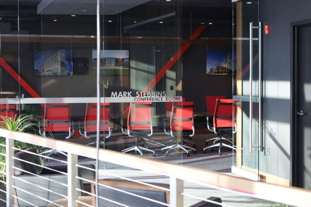 The new conference room overlooks our main entrance and prominently features the PROCON logo through the windows. The room is used for internal team meetings and for many external client meetings held at our headquarters. Like our other conference rooms, the Mark Stebbins Conference Room recognizes Mark's legacy and impact at PROCON, ensuring he is never forgotten by both longtime and new employees.